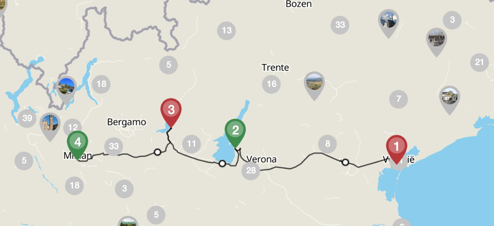 Combineer de romantiek van Venetië met het moderne Milaan in deze super toffe Fly & Drive! Begin je vakantie in het indrukwekkende Venetië, met zijn smalle straatjes en grachten. Vervolgens rijd je naar het bruisende Milaan, waar je de prachtige Dom kunt bewonderen en door de stijlvolle winkelstraten kunt slenteren. Deze route is perfect voor cultuurliefhebbers en shopaholics! Plan je reis van Venetië naar Milaan nu!