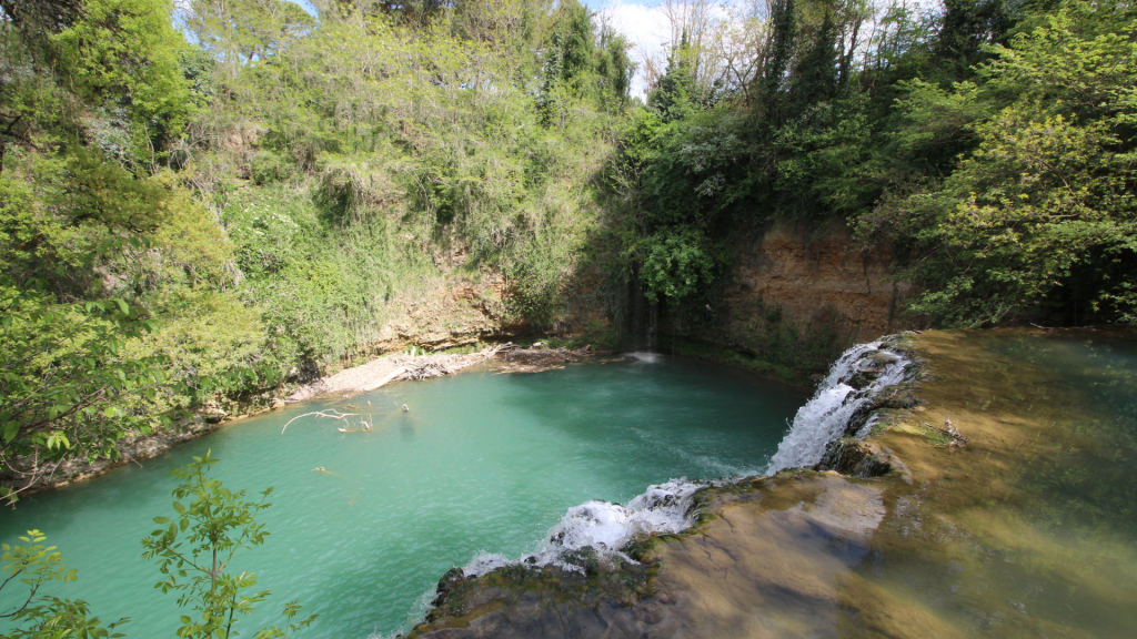 De tocht naar de Diborrato-waterval, dichtbij Poggibonsi, is echt een feestje voor natuurliefhebbers! Je wandelt langs de rivier Elsa, waar je wordt getrakteerd op kraakheldere zwempoelen, kleine watervalletjes en avontuurlijke houten bruggetjes. Het turquoise water maakt het plaatje helemaal af — zo mooi dat je er bijna niet van weg wilt kijken! Na ongeveer 2,5 kilometer wandelen kom je bij de grote ster van deze route: de Diborrato-waterval. Met z’n 15 meter hoogte stort hij zich in een felblauw bassin waar je heerlijk kunt afkoelen of gewoon even kunt chillen met het geluid van kletterend water op de achtergrond. Klinkt als een droom, toch?